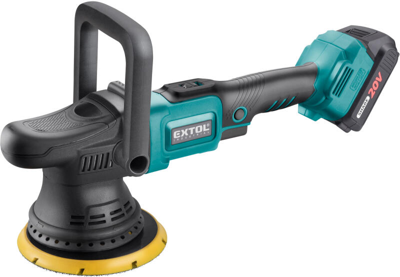Tömeg (akkumulátorral): 2,4 kgAz Extol Industrial akkus orbitális polírozóval  járművek karosszériáját lehet polírozni , fényezni és ápolni (víz használata nélkül). A készülékkel retusálni lehet a kisebb hibákat és sérüléseket a fényezett rétegben (pl. el lehet távolítani a mélyebb karcolásokat és  aszfalt-nyomokat,  valamint a  rovarok okozta  szennyeződéseket, meg lehet újítani a kifakult színezéseket, vissza lehet adni az autó eredeti színét, ki lehet csiszolni a  korrózió okozta  sérüléseket, meg lehet szüntetni az  autómosó kefék okozta hajszál-karcolásokat , el lehet távolítani a hologramokat stb. A polírozás jellegétől függően megfelelő (orbitális polírozóhoz kifejlesztett) polírszivacsot, abrazív anyagokat tartalmazó polírpasztákat vagy emulziókat, konzerváló anyagokat (autó kozmetikát) vagy viaszt kell használni. A polírozó készüléket  padlók, krómozott felületek  és más, akár nagyobb felületek polírozásához is lehet használni (megfelelő polírpasztával).